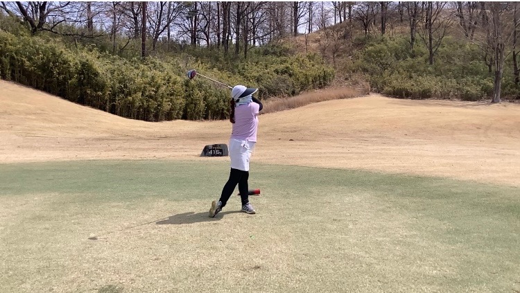 改善したポイントは『右のお尻を後ろへ引く意識でバックスイングスイング』を行うことでした。