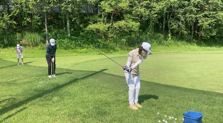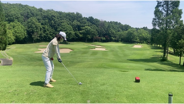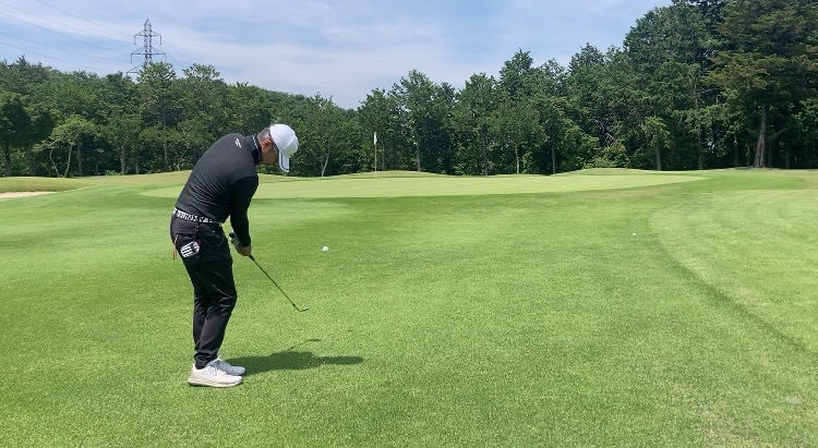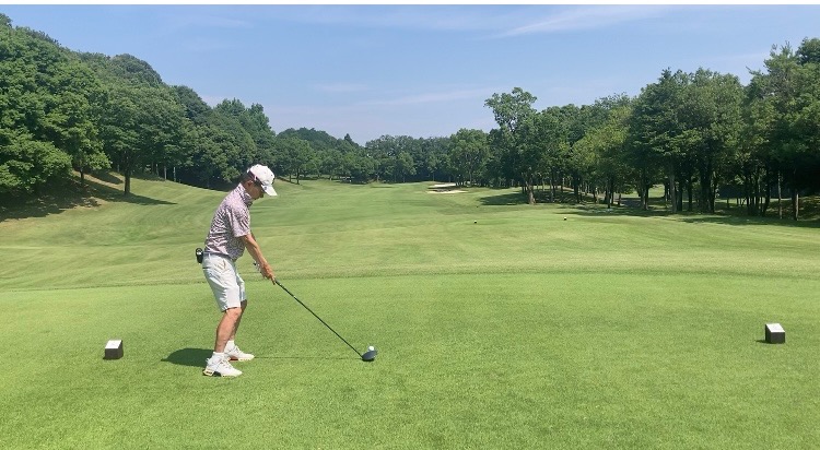 コースでも、前傾は崩れることなくバランスの取れたスイングになりました。