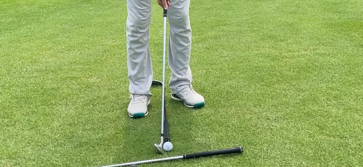 プッシュアウトするということはフェースが右を向いて当たっている、またはトウ(フェースの先っぽ)に当たっている可能性があります。動画で確認したところ、フェースの真ん中には当たっているので、単純にフェースオープンのエラーということが判明しました。