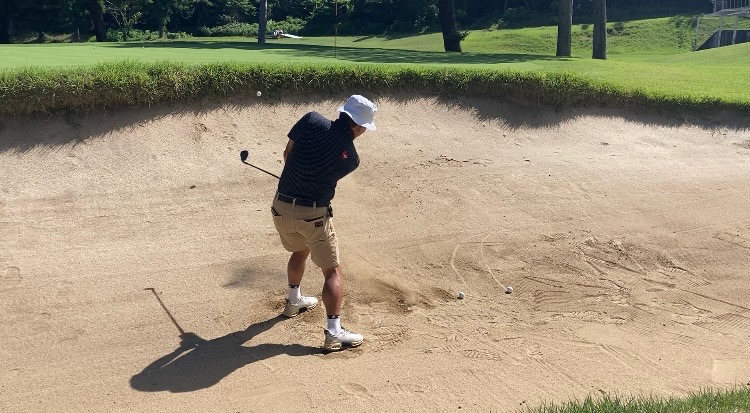 コースでは、よりボールに当てたい気持ちが増します。その為、リズムが早くなり早く振り下ろしたい気持ちもトップを浅くしてしまった原因だったのでしょう。
