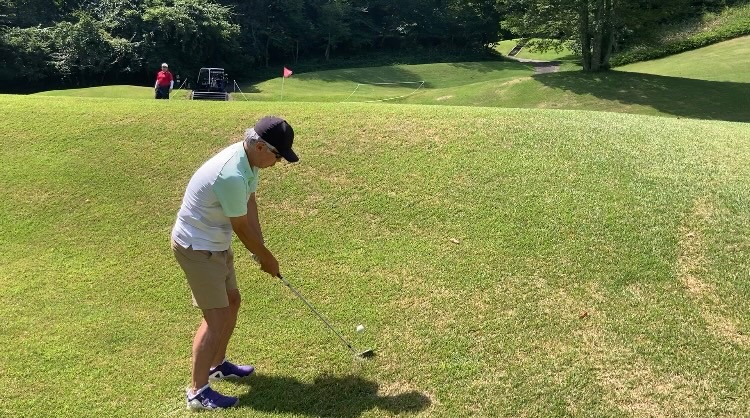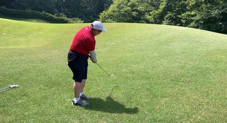 セカンドショットは、つま先下りのライを完璧に捉えることができました。