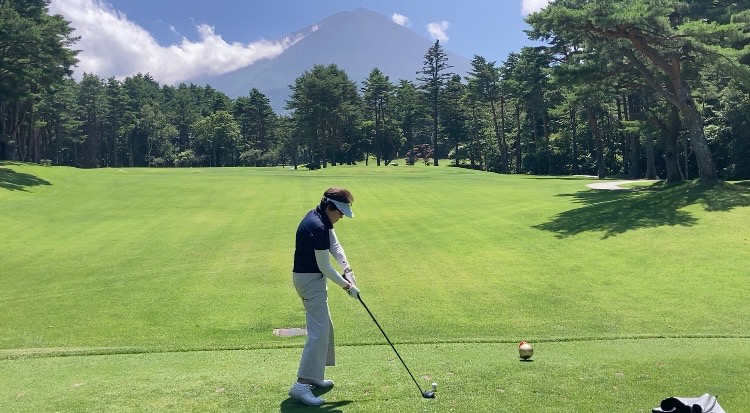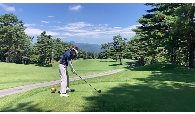 特にドライバーショットでは、左肩を前に出すくらいの気持ちでクローズに構えました。