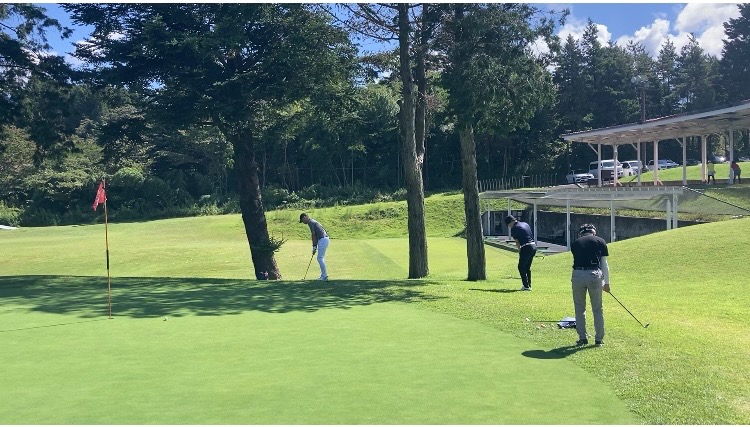 スタート直前にはグリーンのタッチを掴む為にパッティングの練習を行いました!