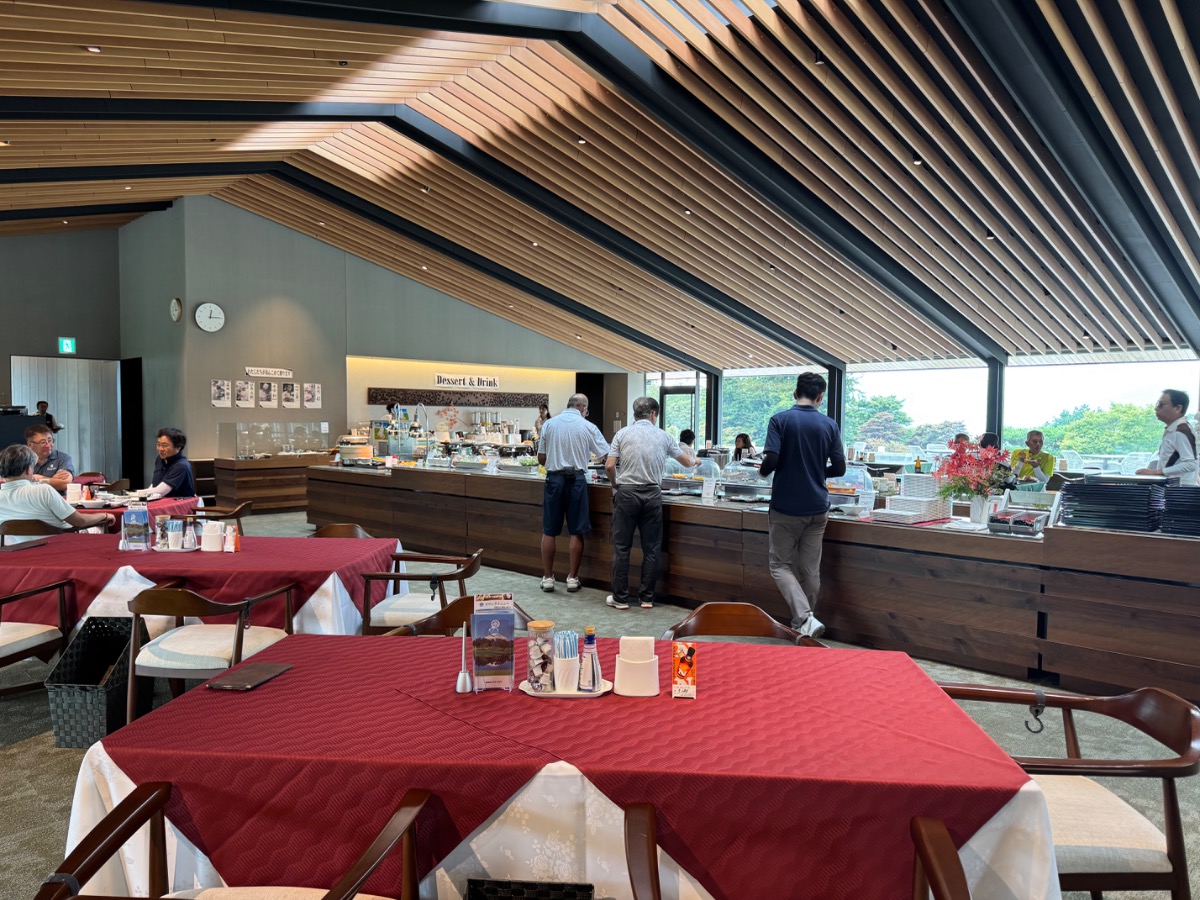 この朝霧カントリークラブのランチは名物のバイキング。ご飯、おかず、デザート、飲み物と種類も豊富で大人気。