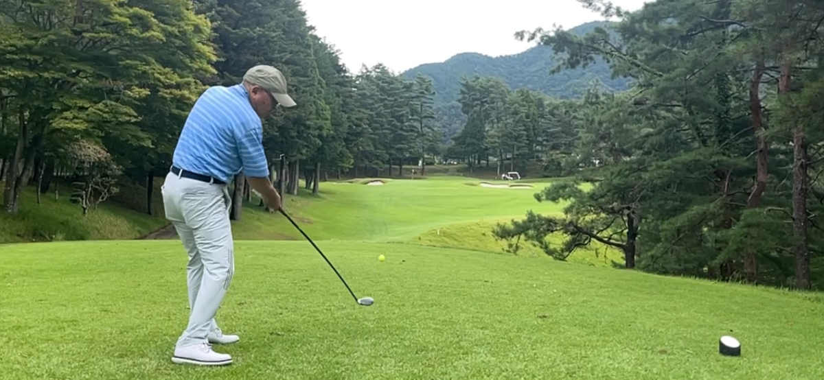 テーマは、ダウンスイングでの左足への体重移動とインサイドから下りるダウンスイング作り。