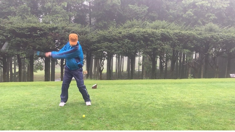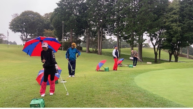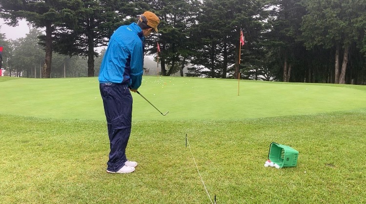 霧雨の隙を狙ってアプローチとパッティング練習を行いました^ ^