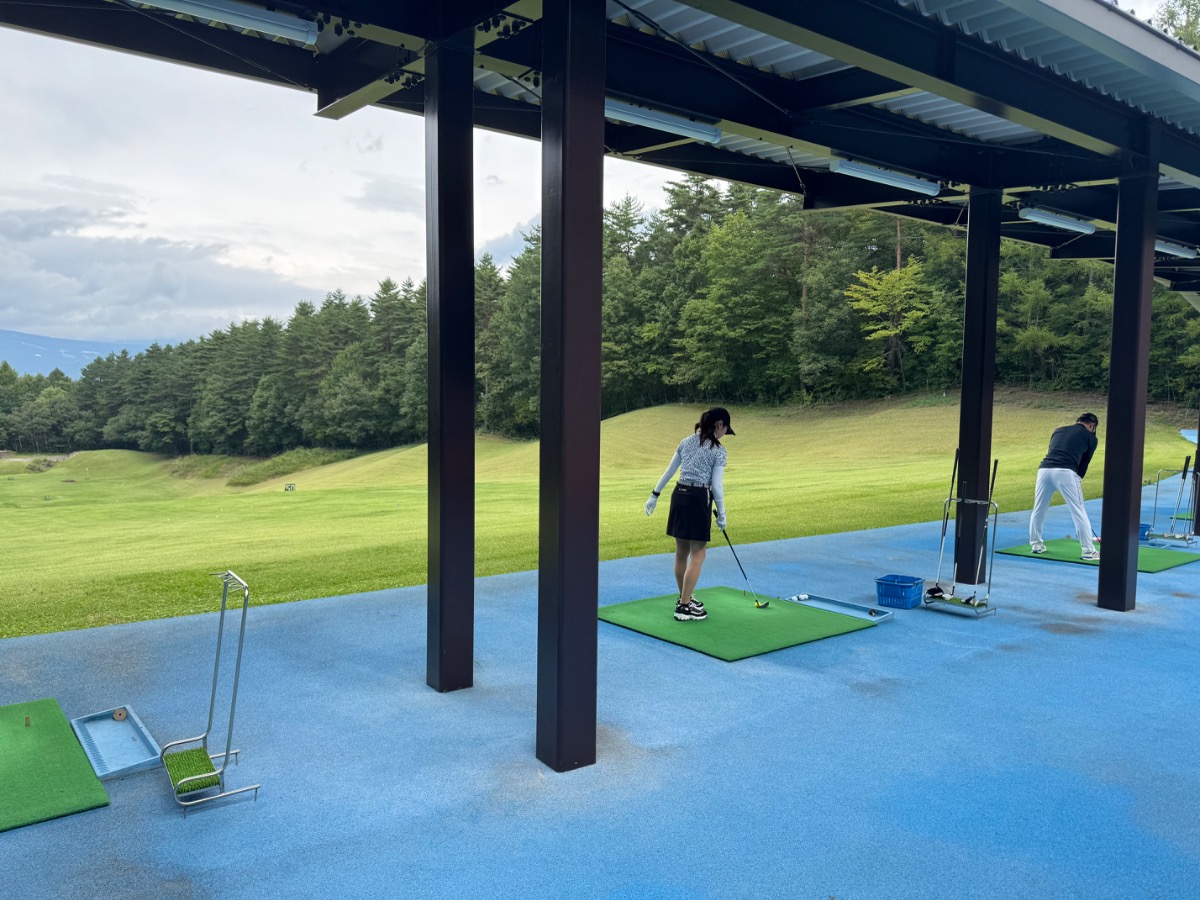 着替えを済ませて打ちっ放し場にてウォーミングアップ。