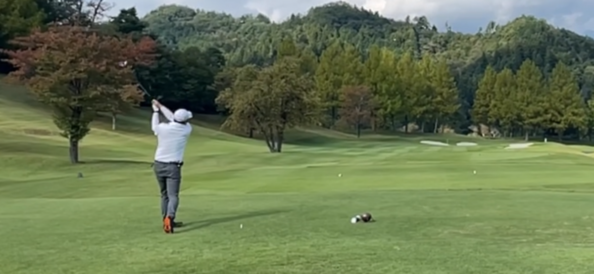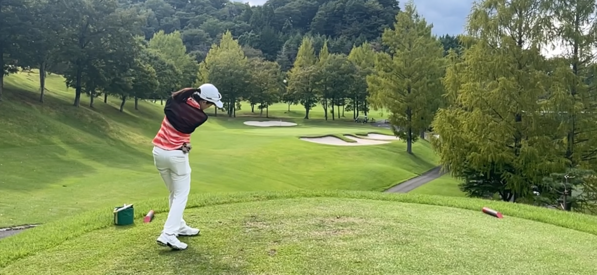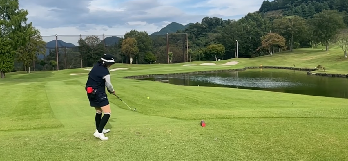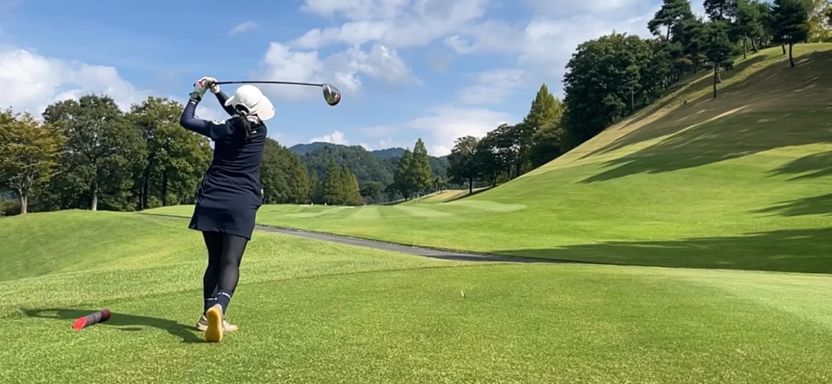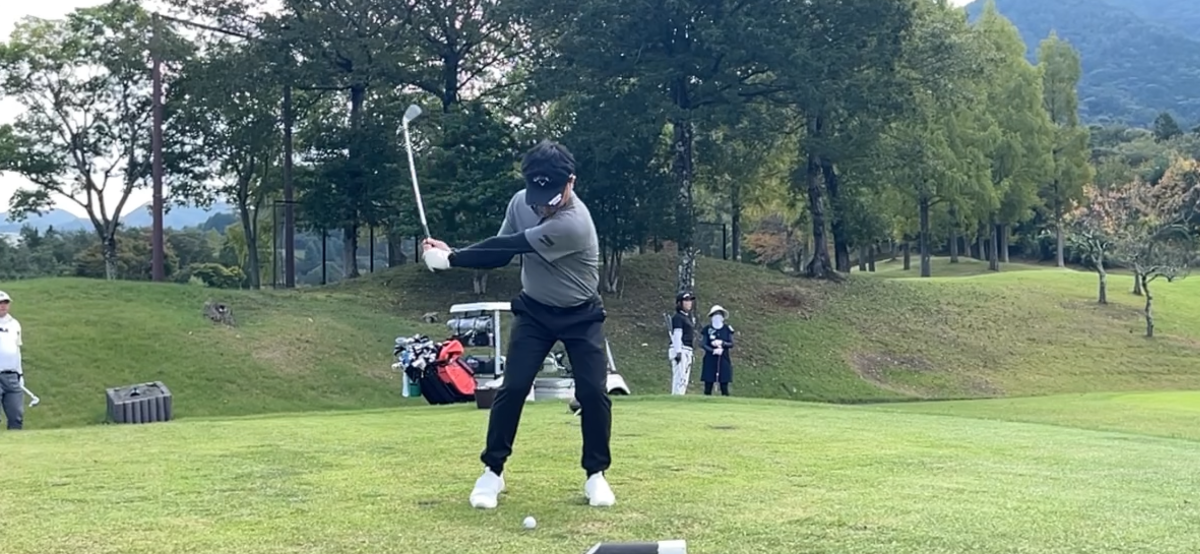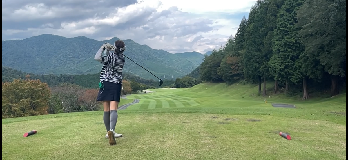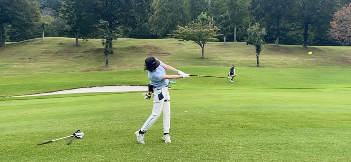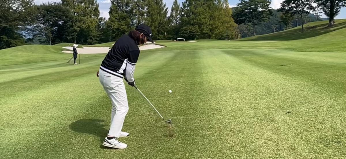 上げる下ろすラインが整ったK様。腰が横に回るようになり、このショットもフェアウェイ真ん中へ。