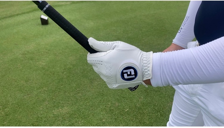 アドレスではシャフトが斜めに傾いている為、左手グリップを斜めに握って親指を縮めるように握るショートサムスタイルに変更しました。