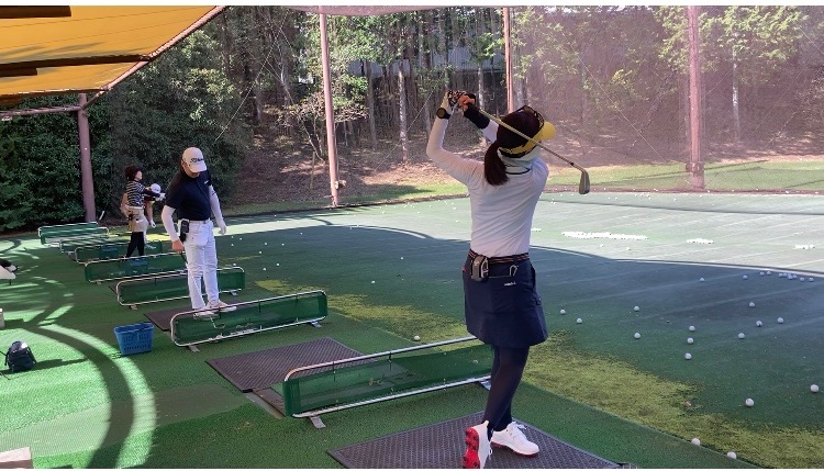 練習場では身体をほぐすように徐々にスイングリズムを上げていきました。