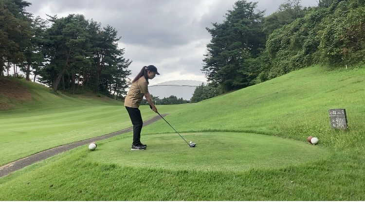 改善したポイントは『アドレスで左肩を前に出すようにしてクローズに構える』ことでした。