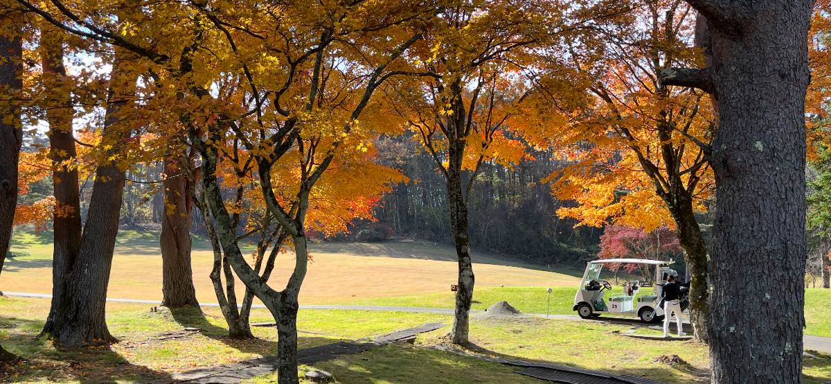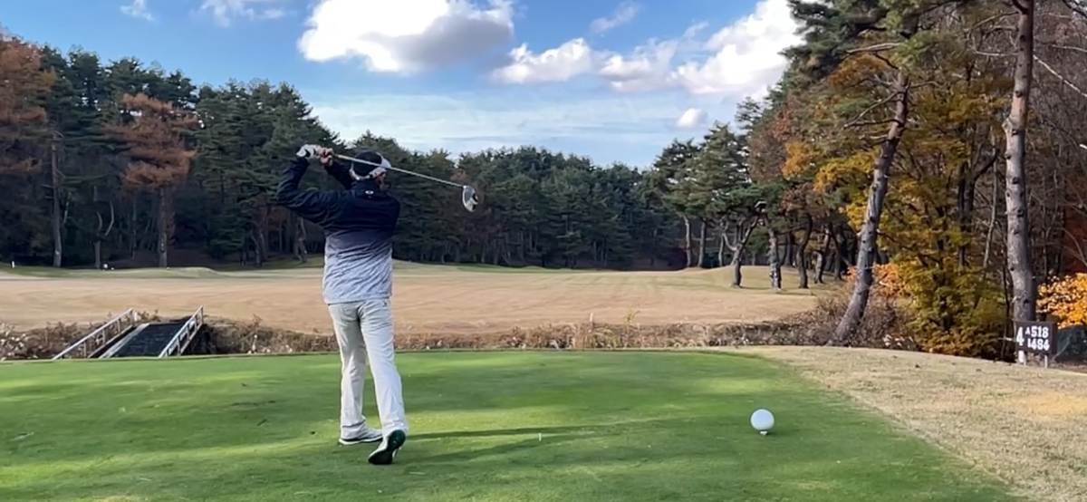 木を避けた場所へ安全にアイアンでレイアップしようとしていたY様に『ドライバーです』とコーチからの悪魔の囁きが…