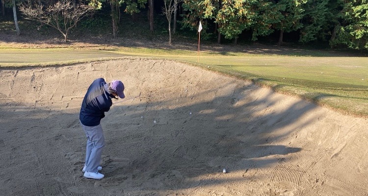 ③インパクトでは左手甲が上向きにならないように意識しました。左手甲が上向きになるとフェースは開き右へ飛んでしまいます。左手甲はアドレスの位置に戻す意識を持ちました。