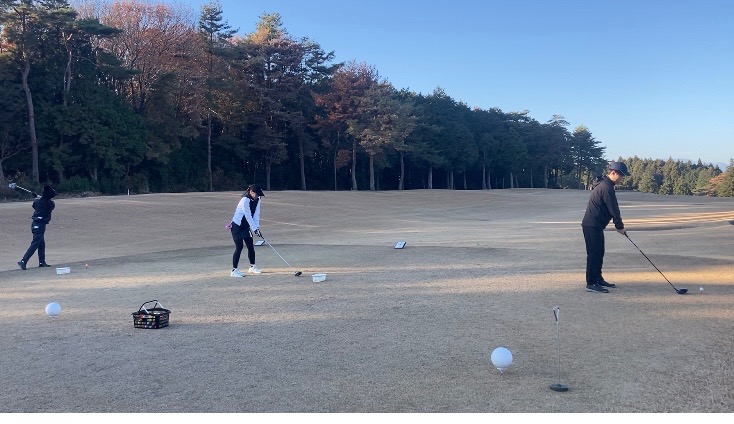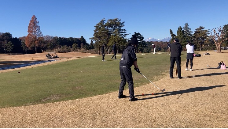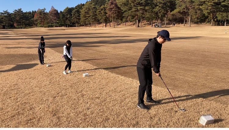 アプローチでは、練習マットとは違い芝生の感触を確かめながら距離感を磨きました!