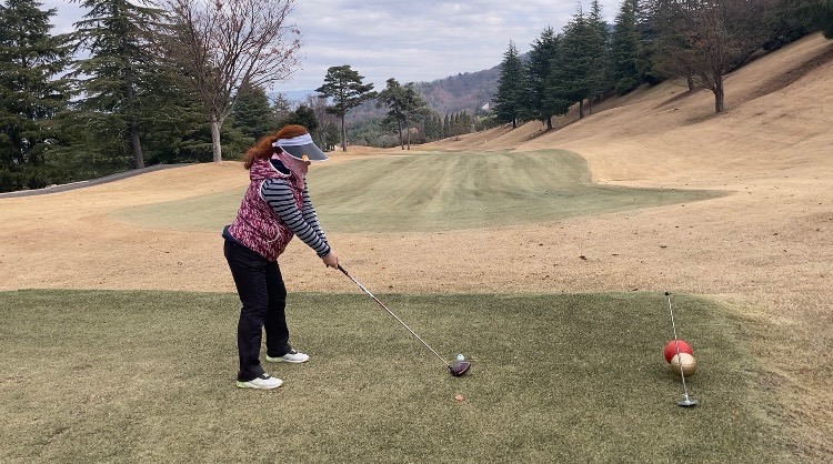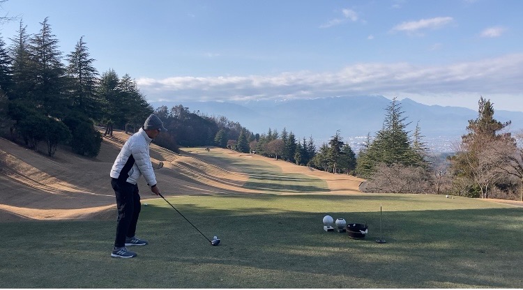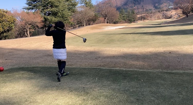 冬ゴルフはウェアをたくさん着込み寒さを凌ぎます。