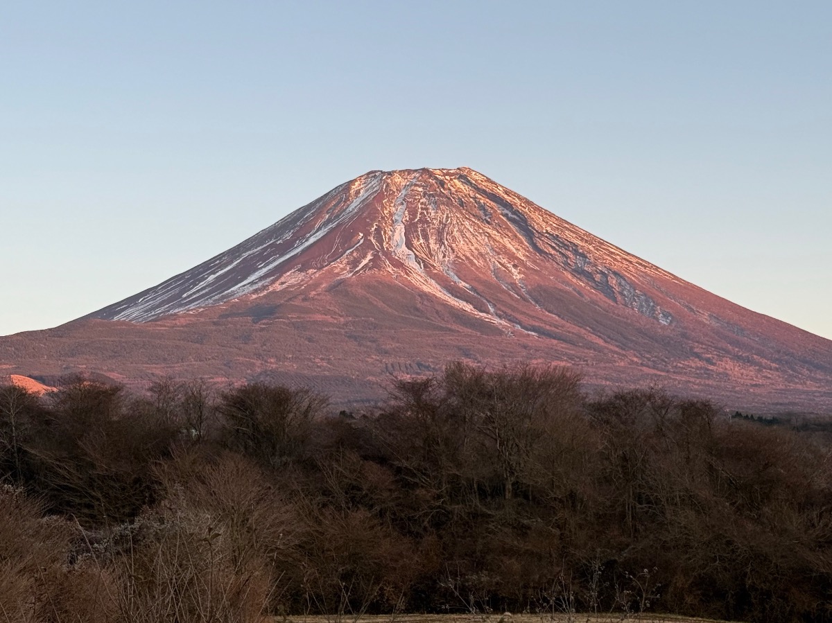 帰路途中夕焼けに染まる富士山がきれいに見えました。