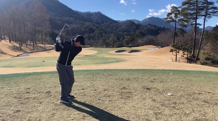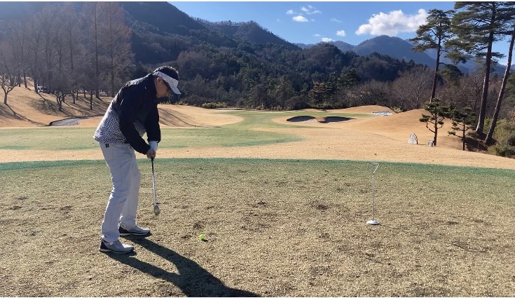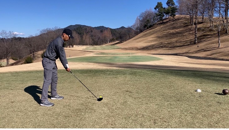 今回のコースは、右へ左へ曲がっているホールがたくさんありました。そのため、スタンスの向きが大切になります。
