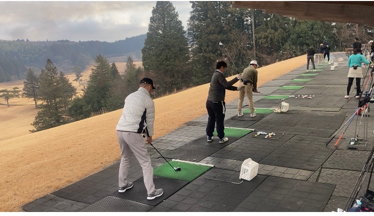 連続素振りや右手片手素振りなどを繰り返し行いクラブヘッドの重さを感じて遠心力を出し自然な振り子運動でスイングができるようにしました。
