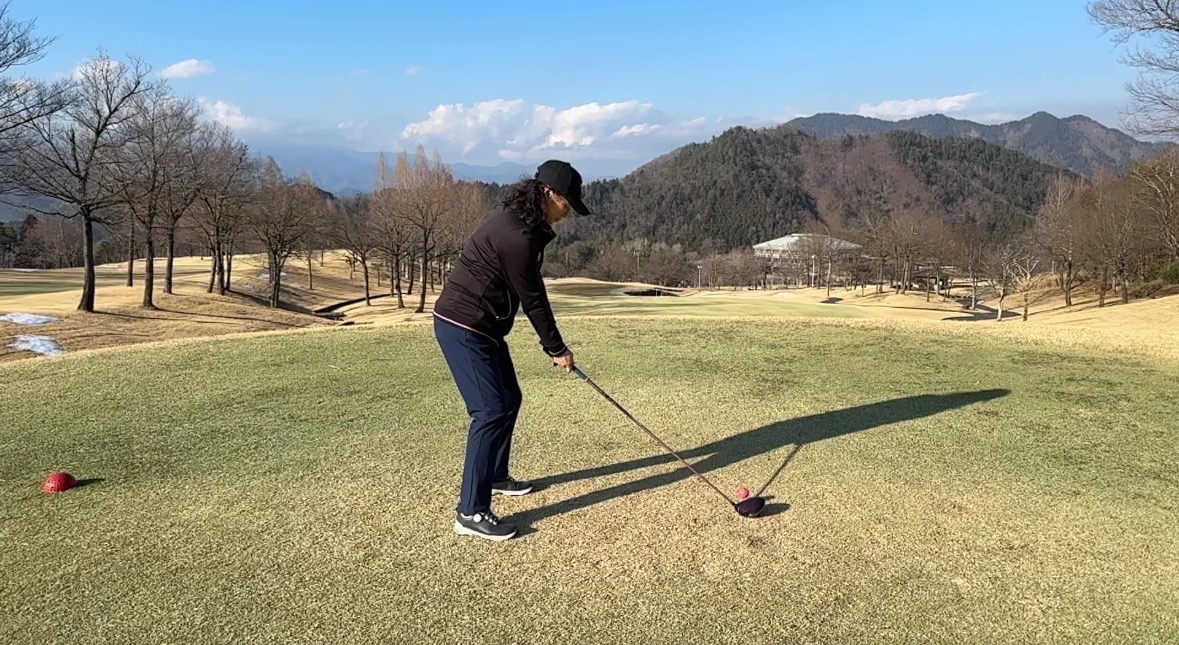 課題は1Wを振り切りフィニッシュをとる、力んでインパクトで飛び上がらない、でした。