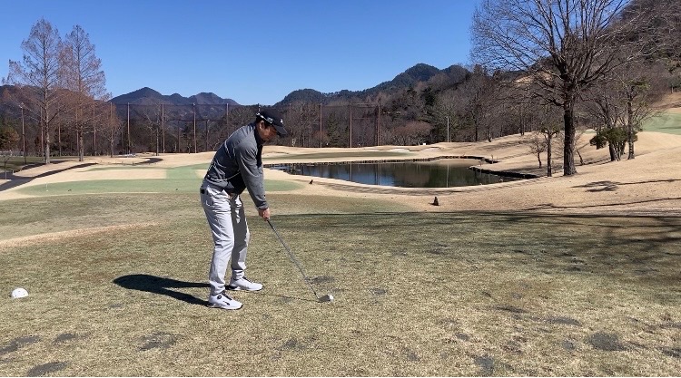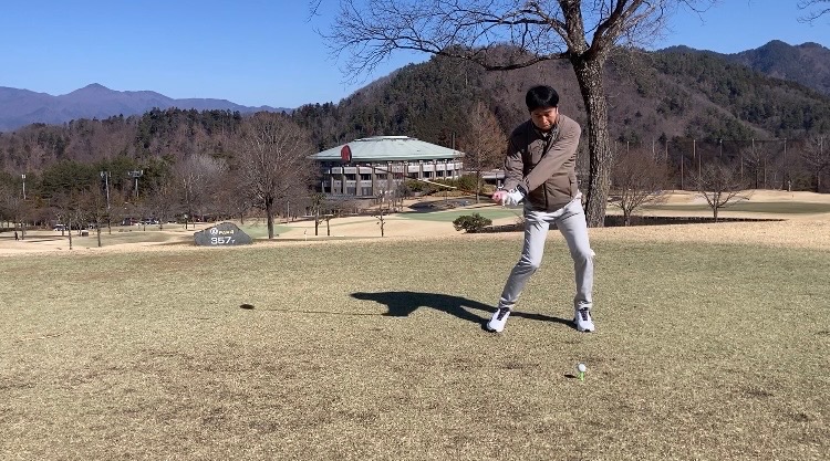 そうすることで、手元を低く抑えることができます。浮き上がっていた手元の位置がアドレスの位置と一致することで再現性を高めることができます。