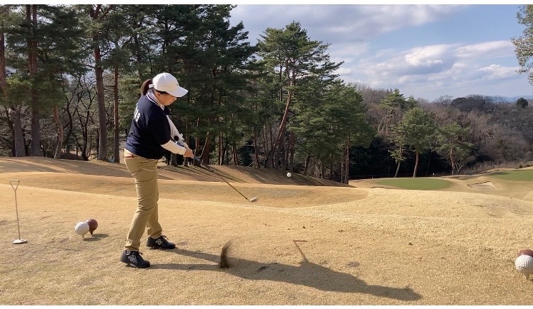 グリップエンド側から引き下ろす動きは、ボールを当てる動きとは真逆になりますので、とても難しいポイントになりますが、今回はコースでも実行しました^ ^