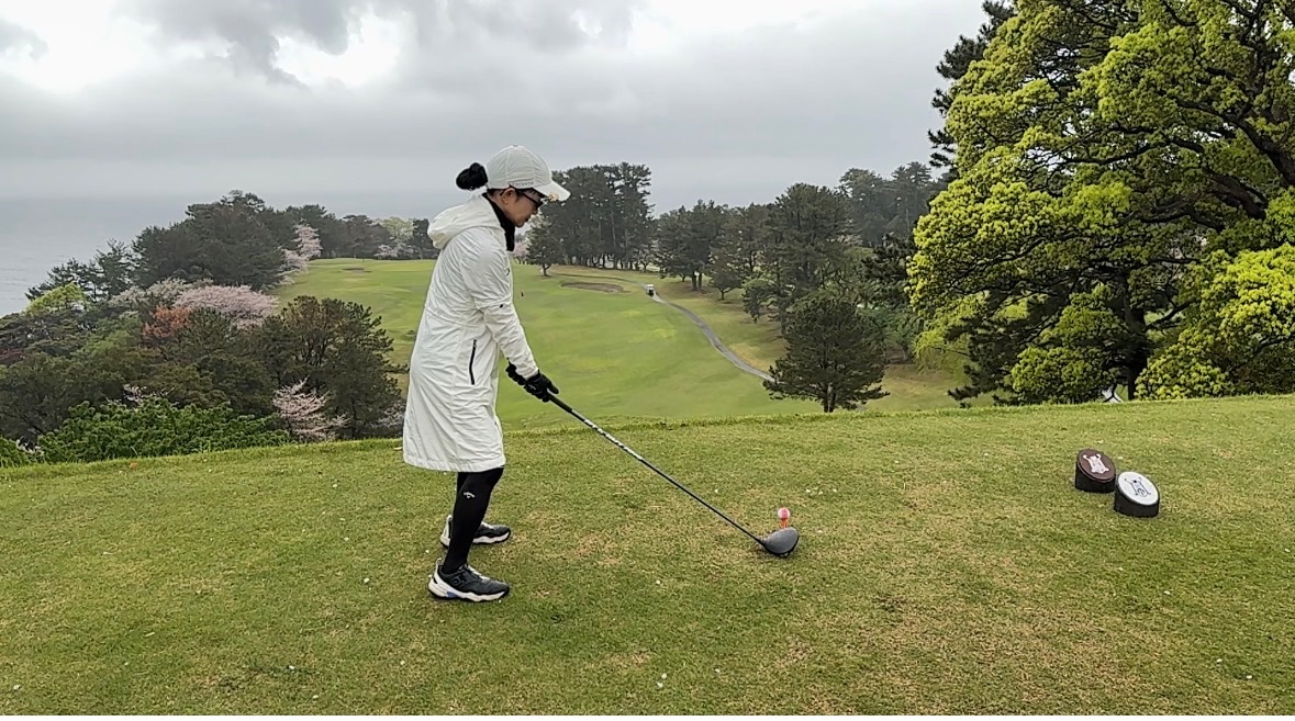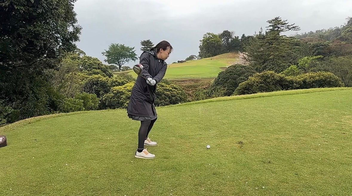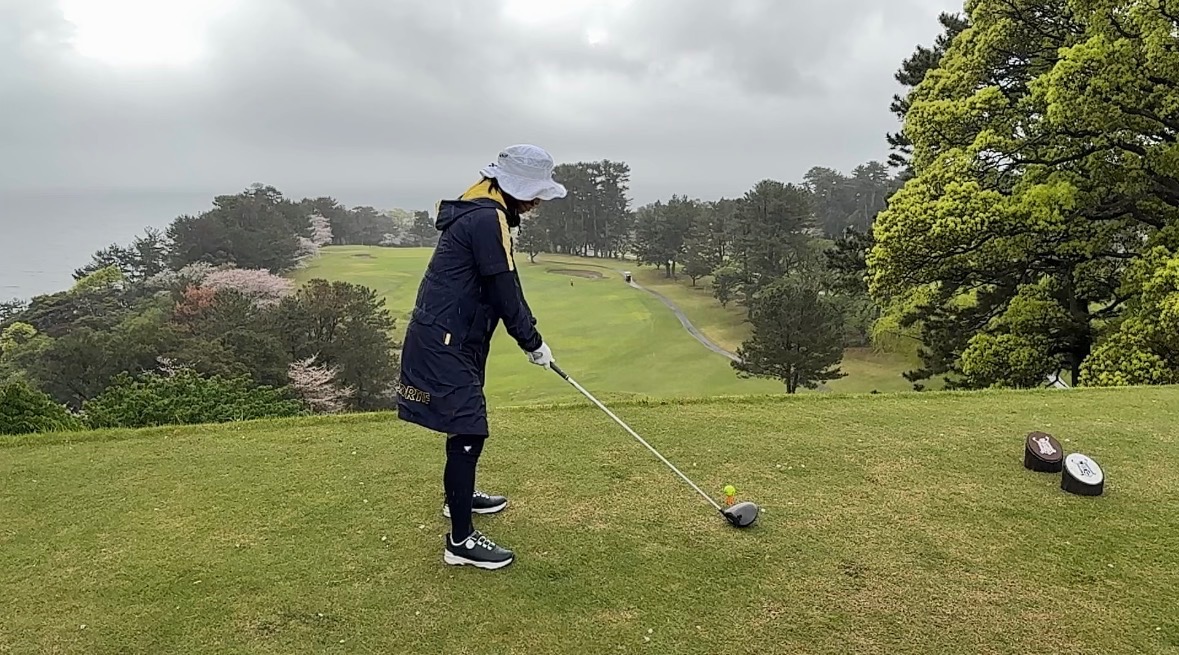 今回は①インパクトで胸を開きすぎない②ダウンスイングで力んでインパクトで飛び上がらない、をメインテーマでラウンドしていただきました。